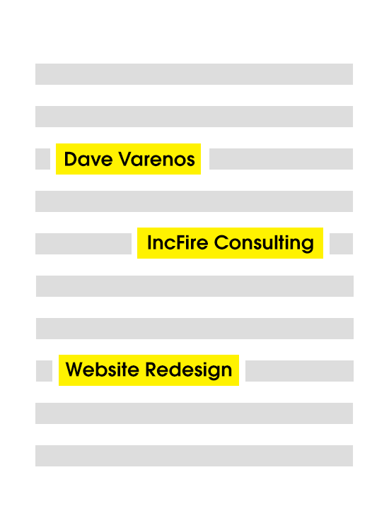 person, company, project, or deal's name in the files you have access to