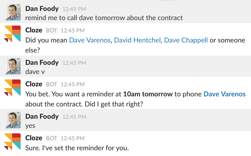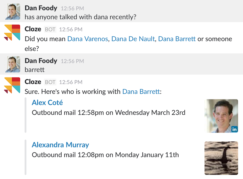 Work from Slack, with all of Cloze available at your fingertips